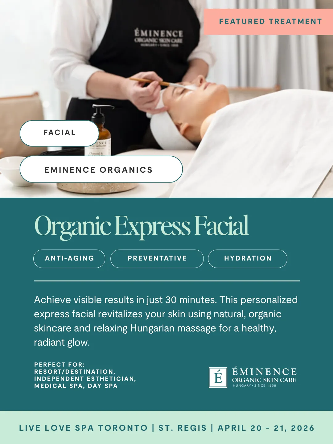 Achieve maximum results in 30 minutes to revitalize your skin for a healthy glow. Indulge in a highly effective personalized, express facial featuring natural and organic skincare complemented by relaxing Hungarian massage techniques.